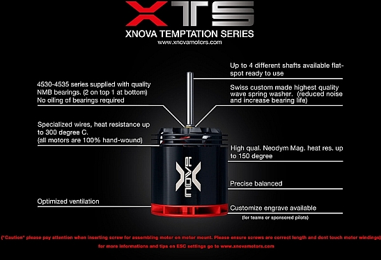 Xnova brushless high performance outrunner motor designed for 12S and 14S crazy power 3D from 700 and up to 800mm size helicopter where highest power to weight ratio is important. One of the most powerfull motor currently available. Also a perfect fit for speed flying. This Motor will bring your 800 size to a different level!